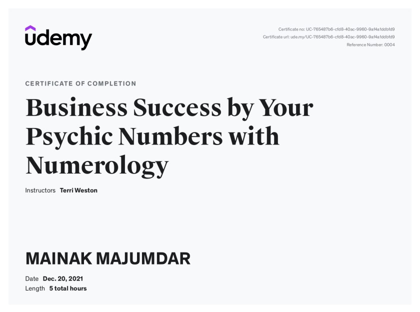 Western Astrology & Numerology Certificate from Udemy